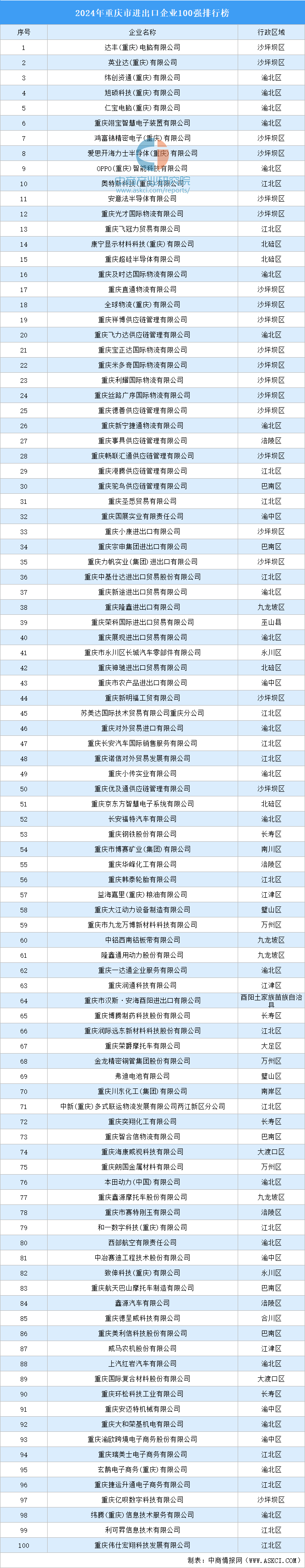进出口企业100强企业中,渝北区、江北区16家企业上榜!