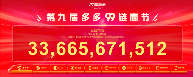 截止9月13日18:00,第九届多多99链商节(原名:多多双十财产电商节)收官,国联股份旗下涂多多、卫多多、玻多多、纸多多、肥多多、粮油多多、芯多多、医械多多、新能多多、冷链多多等平台合计订单最终锁定336。65亿!同比2023年增加31。26%!