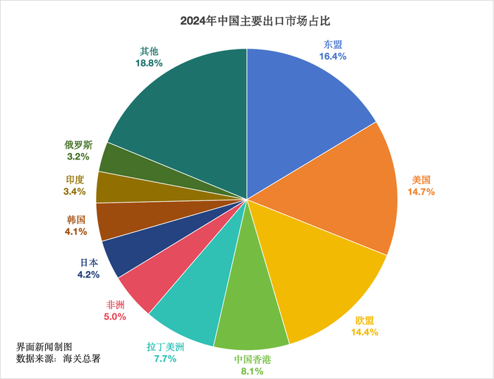 以对美出口为例,受商业摩擦及美国一系列政策影响,2024年中国对美出口额同比下降12% 。(美国海关数据显示)。